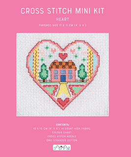 Kit Contains: 15 x 15 (6" x 6") 14 Count Aida fabric, colour chart, cross stitch needle, DMC stranded cotton